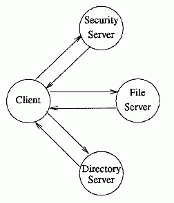 Note that it is possible for more than one server to run on a given node. For example, both a security server and a time server can run on the same machine. In this case, the given node is both the
