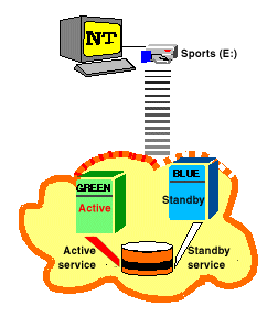 Only one Windows NT computer can connect to a particular disk service at any one time. If the computer currently connected to the service fails, you can connect a different Windows NT computer to the service, as described in Section 3.5.