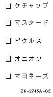 ユーザが項目をいくつでも選択できる選択リストを提示するため, DECburgerは図 2-7に示すXmRowColumnウィジェットを使用します。 メニューの各項目はXmToggleButtonガジェットです。