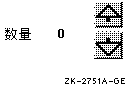 DECburgerは図 2-12に示すXmFormウィジェットを使用して, ドリンク類の数量選択を実現しています。XmFormウィジェットにはピックスマップ・ ラベルのあるXmPushButtonウィジェットが2つ組み込まれています。 上向き矢印のXmPushButtonでドリンク類の数量が増加し, 下向き矢印のXmPushButtonで数量が減少します。XmPushButtonガジェットでピックスマップ・ ラベルが使用できないため,ガジェットでなくウィジェットが使用されていることに注意してください。XmForm ウィジェットには, 記述テキストを表示するためと,ユーザが選択した現在値を提示するための,2 つのXmLabelガジェットも組み込まれています。