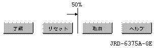 一番目の方法では,ボタンの間隔とマージンを等間隔にしてください。つまり, 左端から最初のボタンまでの間隔と各ボタン間の間隔を等しくし, さらに最後のボタンと右端までの間隔も他の各ボタンの間の間隔と等しくなるようにしてください。 ダイアログ・ボックスの下部に等間隔に並べたプッシュ・ ボタンの例を図 1-16に示します。