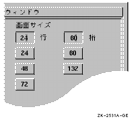 ダイアログ・ボックスのタイトルとしてメニュー項目と共にメニュー名を含めることもできます。 たとえば,ユーザがオプション・メニューをプル・ ダウンし,メニュー項目から「ウィンドウ」を選択したとします。この場合, 次のようなタイトルをダイアログ・ボックスに付けます。