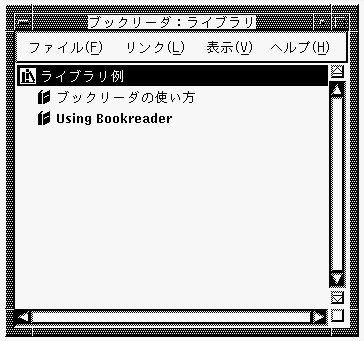 ブックリーダを起動するには,セッション・マネージャの「アプリケーション」メニューから「ブックリーダ」を選択します。 ブックリーダで扱える本のライブラリがライブラリ・ ウィンドウに表示されます。図 6-1にライブラリ・ ウィンドウを示します。
