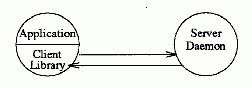 One final distinction between client and server: the server is typically implemented as a continuous process (daemon); whereas the client is usually implemented as a library. In other words, the client side of an application consists of a call to a routine that executes (sending the request over the network and receiving the result) and then returns and goes on with whatever else it was doing; whereas the server side of an application is a dedicated process that runs continuously - waiting for a request, executing it and returning the answer, then waiting for the next request, and so on. The following figure illustrates this distinction.