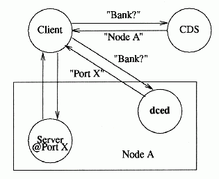 Every machine that runs an RPC server also runs a dced. The dced process always uses the same network endpoint, so its process address is well known. Therefore, once a client