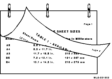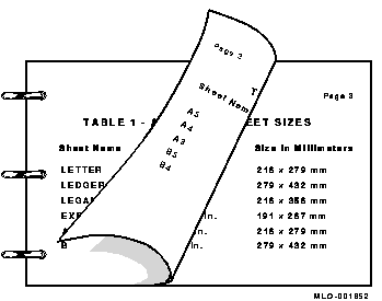 ファイルを印刷するために使用する物理的な用紙のサイズまたは用紙の種類を, ユーザは指定することができます。DECprint Supervisorソフトウェアでは, この情報は次の要素から自動的に判断されます。