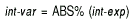 The ABS% function returns an integer that equals the absolute value of a specified integer expression.