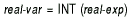 BASIC expects the argument of the INT function to be a real expression. When the argument is a real expression, BASIC returns a value of the same floating-point size. When the argument is not a real expression, BASIC converts the argument to the default floating-point size and returns a value of the default floating-point size.