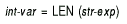 The LEN function returns an integer value equal to the number of characters in a specified string.