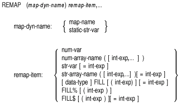 The REMAP statement defines or redefines the position in the storage area of variables named in the MAP DYNAMIC statement.