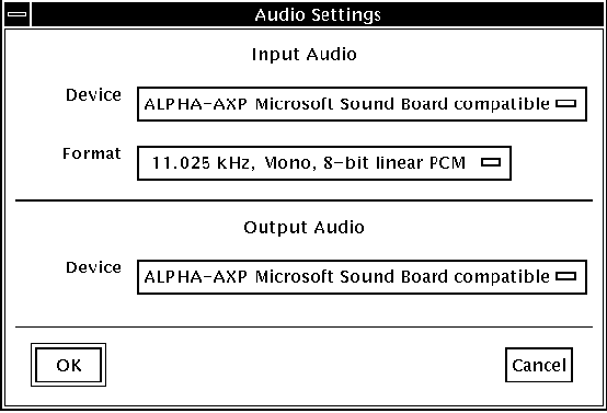 records the AVI file specified on startup. You cannot record MPEG files. When recording, the default audio format is 11 kHz 16-bit PCM.