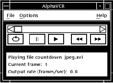 AlphaVCR can play AVI files that contain JPEG and Motion JPEG format compressed video data, and 8-bit X image and YUV uncompressed video data. It can also play files containing 24-bit X image data, but this format requires either the FullVideo Supreme (AV301) or FullVideo Supreme JPEG (AV321) option module.