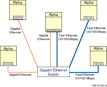 OpenVMS Alpha バージョン 7.2 では,DE500-BA PCI イーサネット・ネットワーク・インタフェース・カードのランタイムおよびブート・サポートを提供しています。 これは,半/全デュプレックス・モードでの 10 または 100 Mb/s のオペレーションが可能です。 OpenVMS Alpha バージョン 7.2 では,DE500-FA PCI FastEthernet ネットワーク・インタフェース・カードのランタイムおよびブート・サポートも提供しています。 このサポートでは,半/全デュプレックス・モードでの 100 Mb/s オペレーションが可能です。
