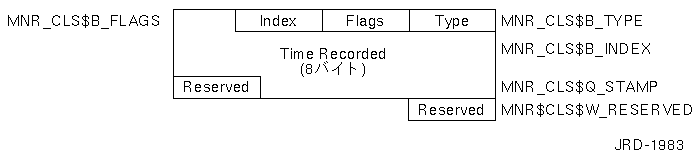 | Flags | MNR_HDR$L_ FLAGS | 全部で32のフラグ・ビット。下位ビット=ビット0 。フラグはすべて,今後の使用のためコンパックで予約している。(1ロングワード) |