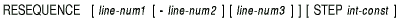 3. Line-num3 specifies the new first line number; the default number for the new first line is 100. You can specify line-num3 only when resequencing a range of lines.