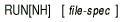 The RUN command allows you to execute a program from the VAX BASIC Environment without first invoking the OpenVMS Linker to construct an executable image. In addition, the RUN command allows you to access user specified and system shareable image libraries for undefined symbols. The RUNNH command is identical to RUN, except that it does not display the program header, current date, and time.