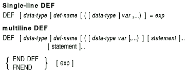 The DEF* statement lets you define a single- or multiline function.