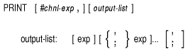 1. Chnl-exp is a numeric expression that specifies a channel number associated with a file. It must be immediately preceded by a number sign (#). If you do not specify a channel, BASIC prints to the controlling terminal.