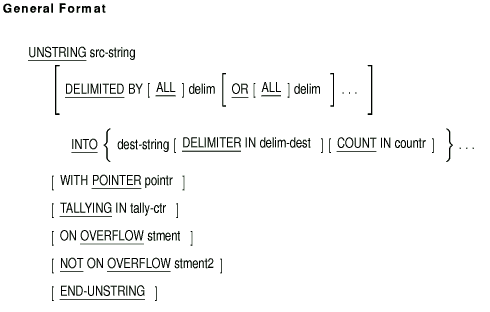 11. If there is a DELIMITED BY phrase, examination proceeds to the right until the UNSTRING statement detects delim. (See General Rule 6.)