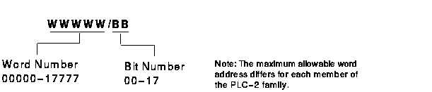 Figure 3-1 shows the structure of a legal address for the PLC-2 family.