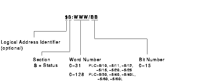 Figure 3-11 PLC-5 Status Data Table Address Format