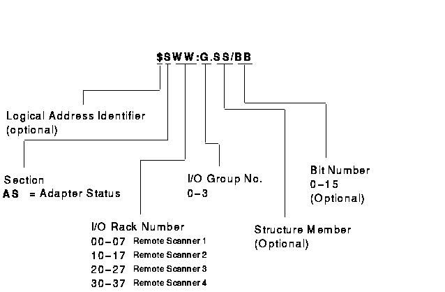| AS10:0.OI | BIT_STRING 2 | I/O rack 10, group 0, remote scanner 1 output inhibit |
