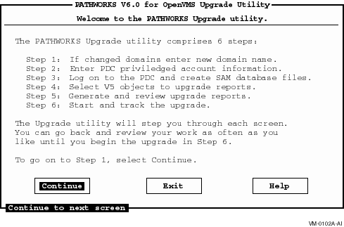 PATHWORKS Advanced Server キットはサーバーにドメインを確立し、サーバ情報をアップグレードするアップグレードユーティリティを提供します。 最初にアップグレードユーティリティを実行する時、システムは PATHWORKS Advanced Server セキュリティアカウント・マネージャー(SAM)データベースファイルを作成し、アップグレードしているサーバーにドメインを識別させます。付録 A、アップグレードユーティリティによって作成されるファイルを参照してください。