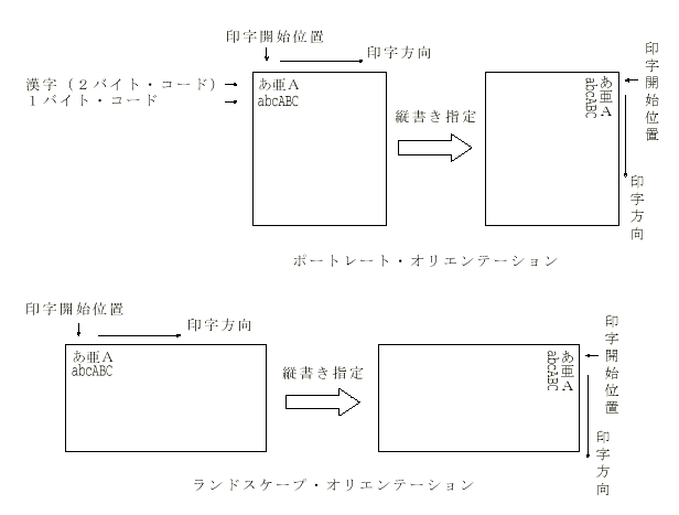 この命令では,印字方向と印字開始位置の両方が変更されるので,ページのオリエンテーションは変化しません。 図 2-1 を参照してください。