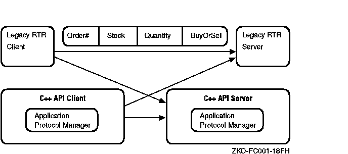 This process is illustrated in Figure 1-18. In this figure, Library represents the RTR C++ API shareable images (OpenVMS), DLLs (Win32), and shared libraries (UNIX).