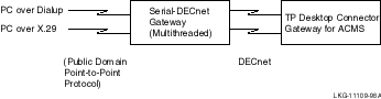 Serial connections to the TP Desktop Connector gateway for ACMS are made through the Serial-DECnet Gateway. Figure 4-1 illustrates the connections.