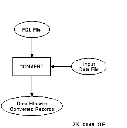 Figure 1-13 shows how CONVERT creates data files and loads them with converted records from an input file.
