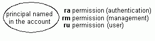 To change all management, authentication, and user information (except passwords) for accounts, you must have the following permissions for the principal that is named in the account: