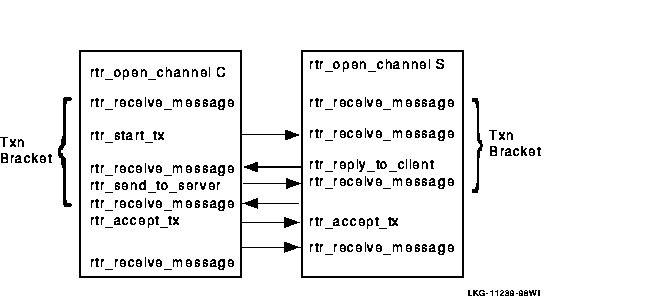 To engage the nested transaction, the application uses rtr_send_to_server and rtr_prepare_tx . For example,