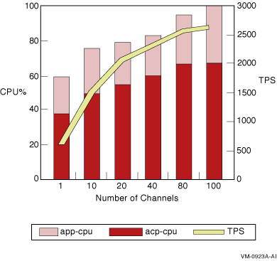 Figure 2-10 Two-Node TPS and CPU Load by Number of Channels