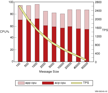 Figure 2-9 Single-Node TPS and CPU Load by Message Size