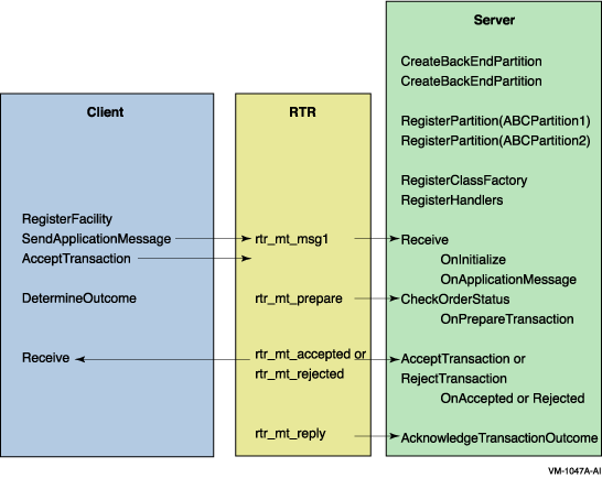 5. Accept the transaction. When the application has successfully finished the transaction, the client tells RTR that it votes to accept the transaction.
