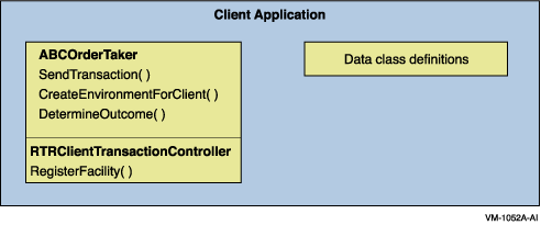 The client application header file ABCOrderTaker.h declares the interface for the ABCOrderTaker class. The file ABCOrderTaker.cpp provides the implementation.