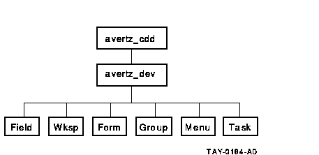 The MAKE_RECORDS utility presumes that you have stored your ACMS workspace definitions in a specific CDD directory. For example, Figure 4-2 shows the CDD directory structure for the AVERTZ sample application.