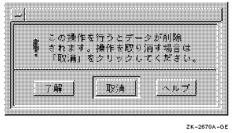 省略時のプッシュ・ボタンとは,ユーザがリターン・キーを押すことによって選択されるボタンです。 ユーザはリターン・キーを押し,作業を続けることができます。 省略時のプッシュ・ボタンを指すと,図 1-16 に示すように,Motifが強調表示を加えて自動的に表示されます。