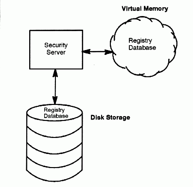 Each security server maintains a working copy of the registry database in virtual memory and a permanent copy on disk. All reads and updates operate on the copy that is in virtual