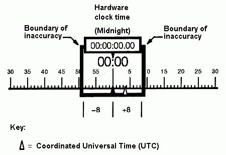 when the clock next shows a time of 0:00:00.00, the inaccuracy is 8 seconds. UTC time may be 23:59:52.00 or 0:00:08.00, but is probably somewhere in between. Therefore, the system time is an