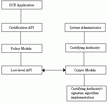 Cryptographic modules embody the signature algorithms that are used to sign and verify certificates. Certificates are signed by certifying authorities (which are usually invoked by system administrators or some other specially privileged authority to create certificates), and are retrieved (and verified) by policy modules (which are called by various applications seeking principals' public keys).