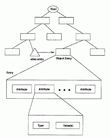 Each object known to the directory is represented by an entry. The set of all entries is called the Directory Information Base (DIB), which is a hierarchical tree. Each entry consists of a set of attributes representing specific information about the object. Each attribute, in turn, has a type and one or more values of that type. Attributes with more than one value are referred to as multivalued or recurring attributes.