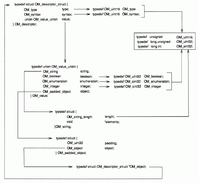OM_descriptor is made up of a series of nested data structures, as shown in the following figure.