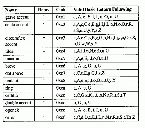 Only certain combinations of diacritical characters and basic letters are valid. They are shown in the following table