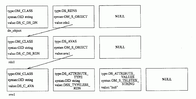 The following figure shows a three-layer compound object: the top-level superobject, dn_object, contains the subobject rdn1, which in turn contains the subobject ava1.