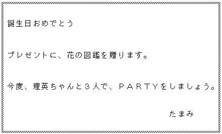 ●3行目 - "今度、理英ちゃんと3人で、 PARTYをしましょう。"