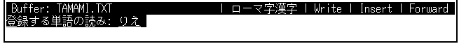 日本語EVEの ENTER TANGO コマンドを使います。このコマンドは, 人名のように変換されにくい単語などを簡単な読み方で登録して, 変換の効率をあげるのに役立ちます。