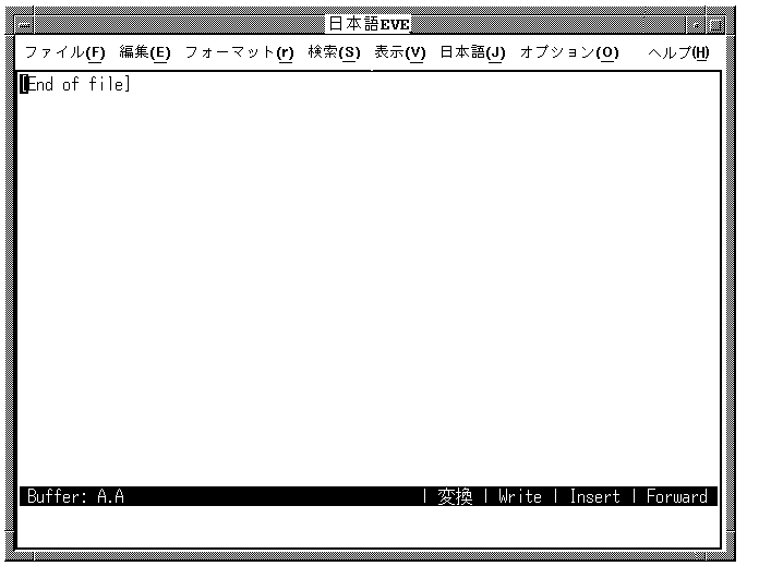 日本語EVEは,従来のキャラクタセル端末だけでなく, DECwindowsの環境でも使うことができます。 大部分のコマンドとキーパッド機能は,どちらの環境でも同様に動作します。