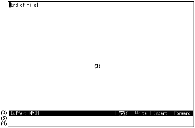 | (2) | ステータス・ライン | 編集中のモードの状態をあらわします。 |